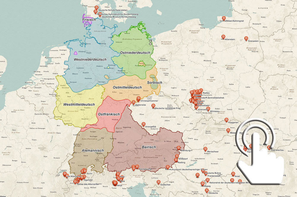 Der interaktive Kartenweiser verlinkt zu allen bisher erstellten Storymaps. Hierzu können alle Kartenelemente (Punkte, Linien und Flächen) angeklickt werden. Der Lesezeichen-Schalter oben links erlaubt einen Schnellzugriff auf verschiedene geographische Regionen. Die Ladezeit kann bis zu 15 Sekunden dauern. Sollte der Kartenweiser nicht angezeigt werden, klicken Sie bitte hier.