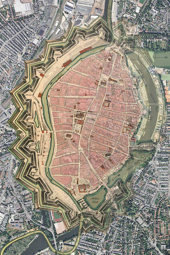 Beispiel Lübeck mit Überlagerung einer Karte von 1750 (Seutter)
